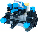 Low pressure piston/diaphragm pumps, high volume, ideal for very aggressive chemical solutions, weed-killing treatments and liquid fertilizers. Made of polypropylene and stainless steel 316 (Bertolini patent).